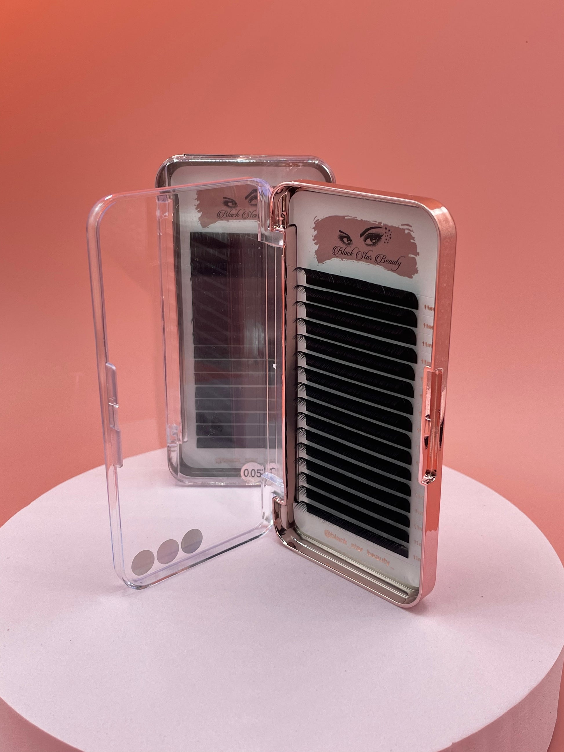 Faux mink lash extensions! Perfect black without any hue. I love these for all of my volume styles or creating wet look.