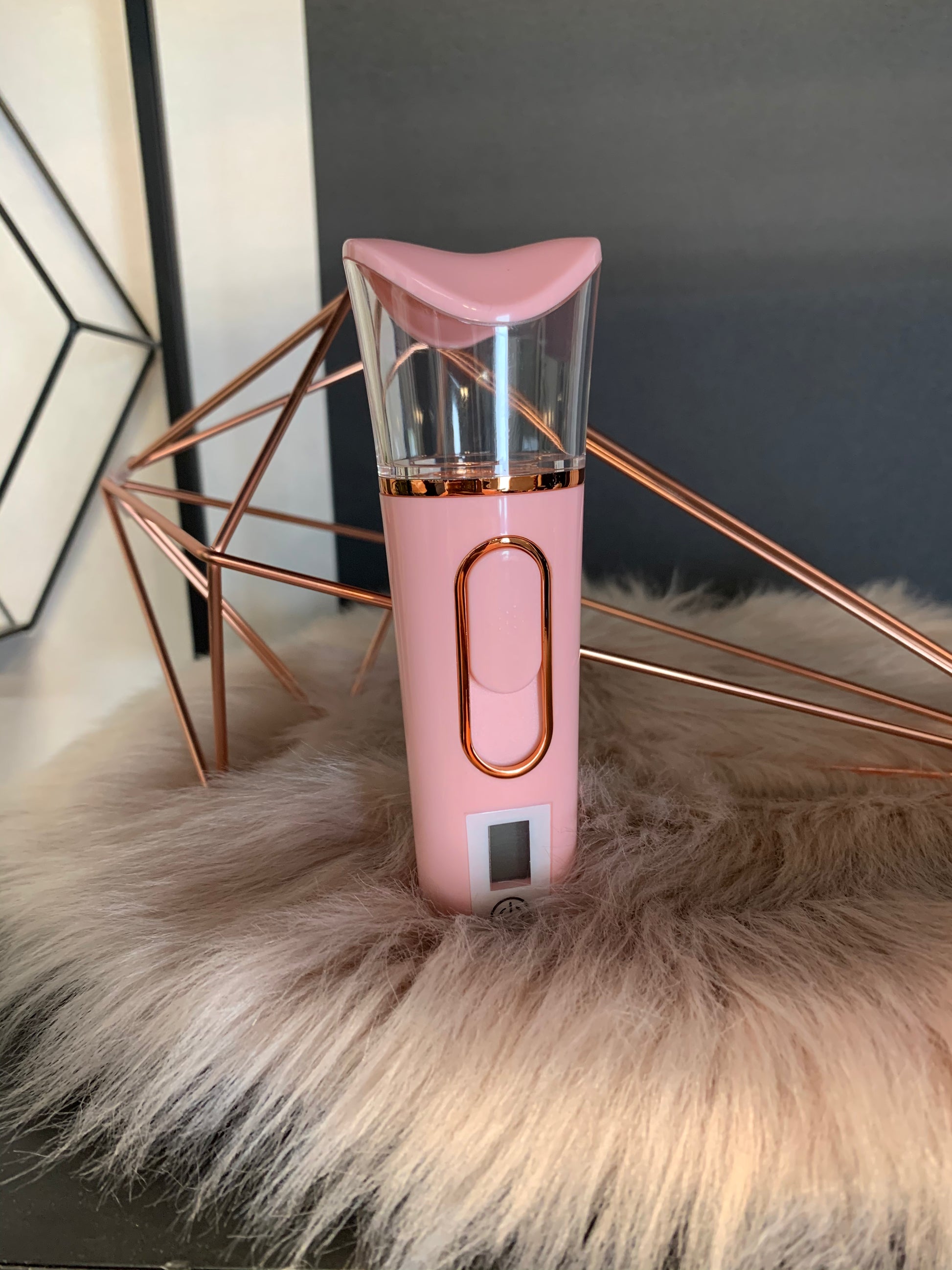 - After thoroughly air drying your client’s lashes at the end of the service, hold the Nano mister in an upright position 8-12 inches away from your client’s lashes. Sliding the bottom part of the device downward will turn it on.