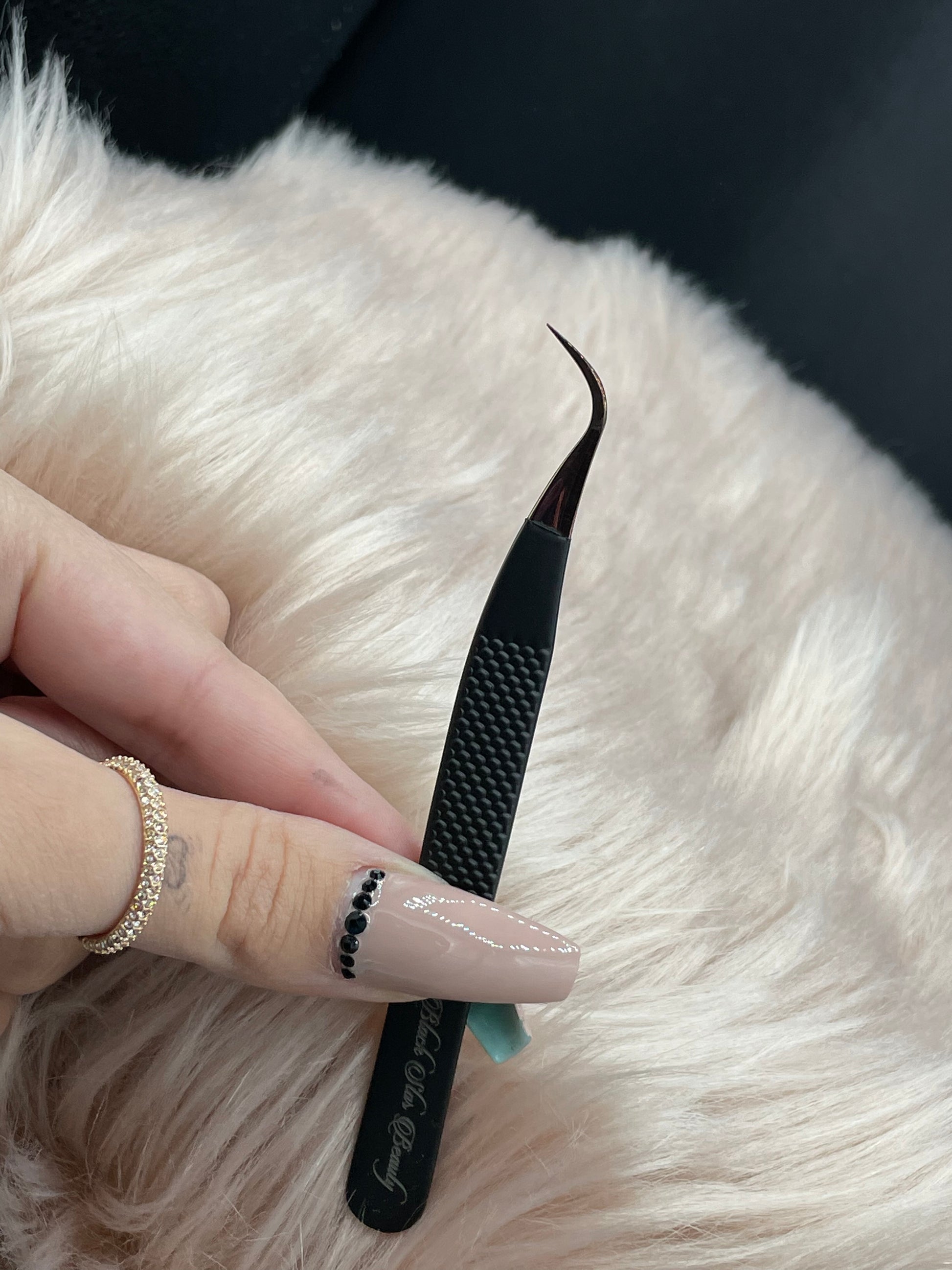 Rose gold, Diamond Grip eyelash extension tweezer.