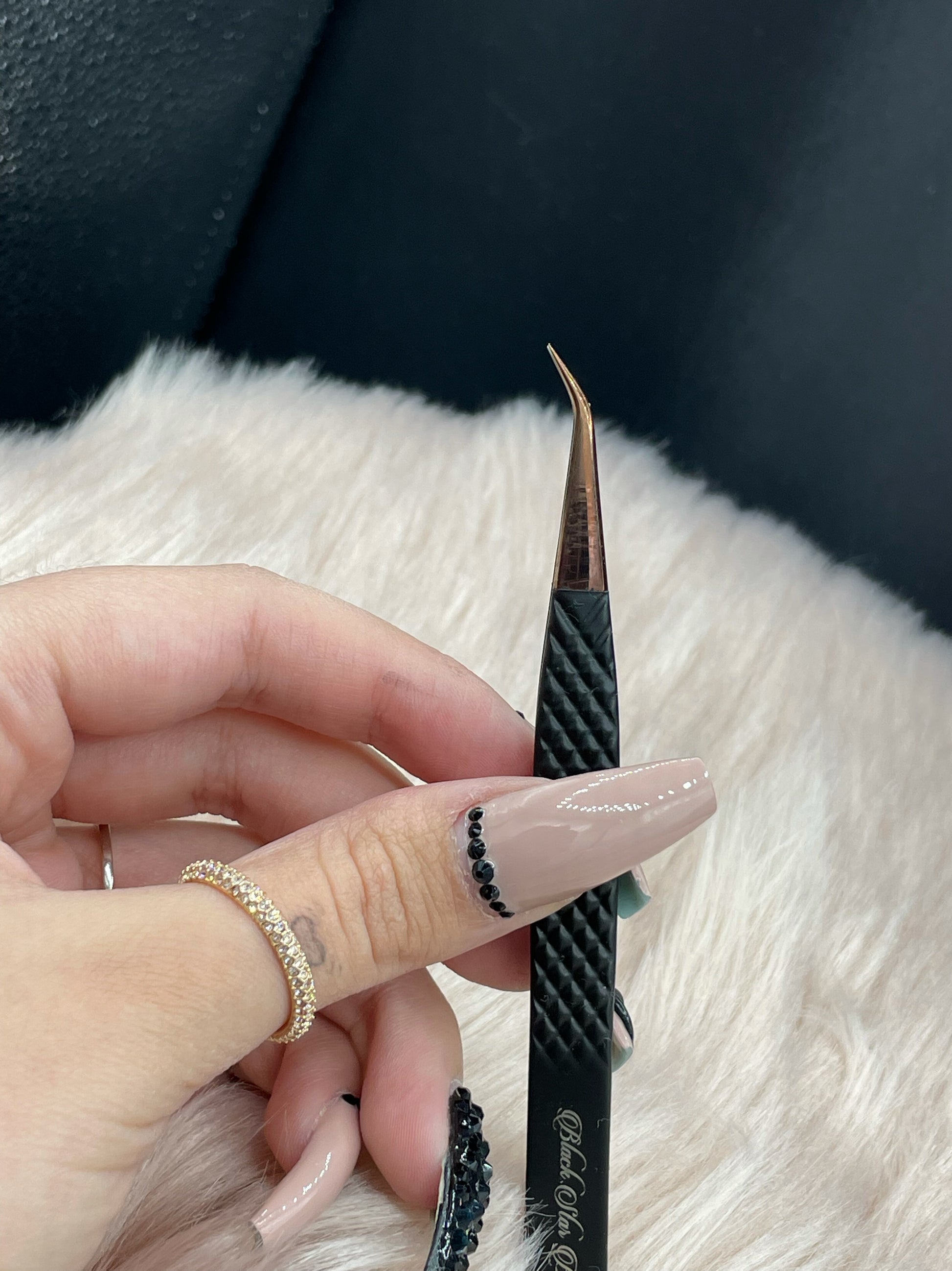 Rose gold, Diamond Grip eyelash extension tweezer.